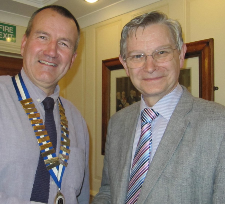 Chairman Simon Powlson welcomes new member Stuart Arnold into the Club at our second lunch meeting this year