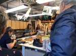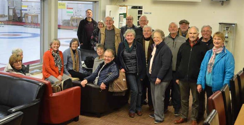 Fifteen of us went curling at Fenton’s rink near Tunbridge Wells on a cold but clear Tuesday in February. After a very useful introductory video and lesson we split into four teams and set about playing for real. Our efforts were a bit approximate to begin with but as we got familiar with the stones and the speed of the rink we improved both our direction and distance. Two players, Ian and Valerie, were particularly successful in mastering the art of launching 20kg of Aisla Craig granite down the 150 foot rink and stopping it in the target area.
