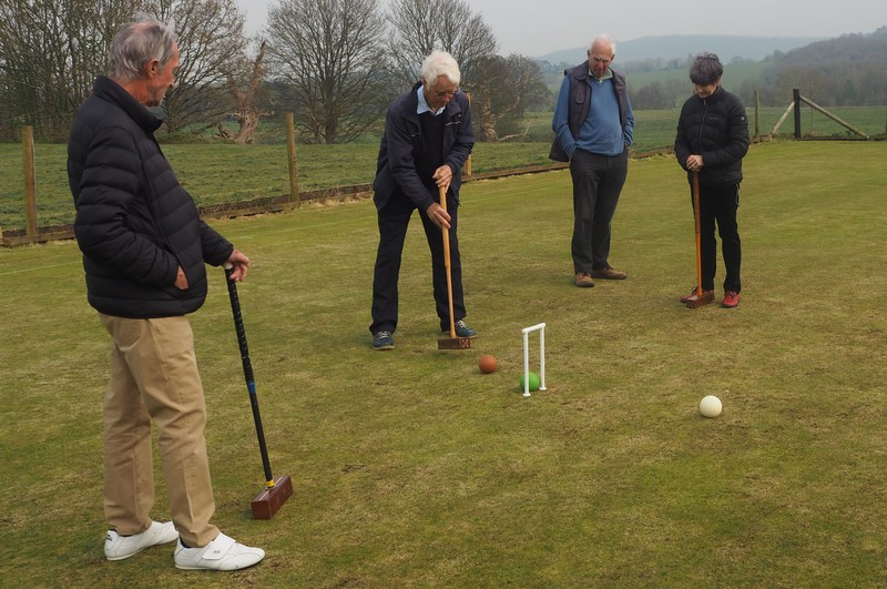 The photos above show the very enjoyable afternoon 9 of us spent practicing at the beautiful surroundings at the Rother Valley Croquet Club at Duncton near Petworth under expert coaching and hospitality of Anne & Alan Sugarman - the event was arranged by Laki Marangos
