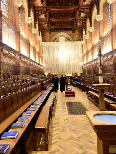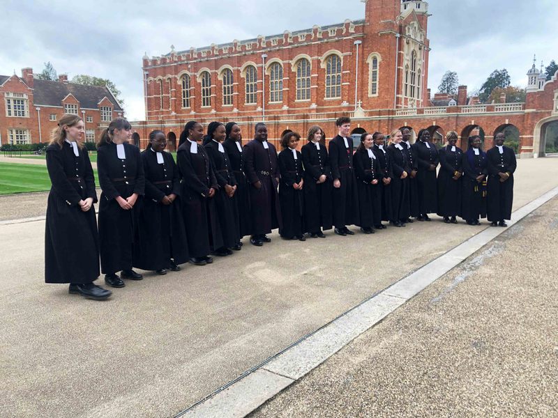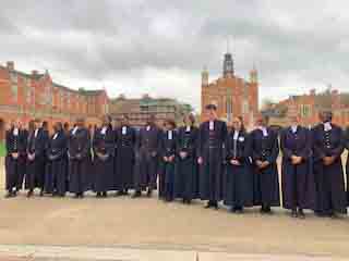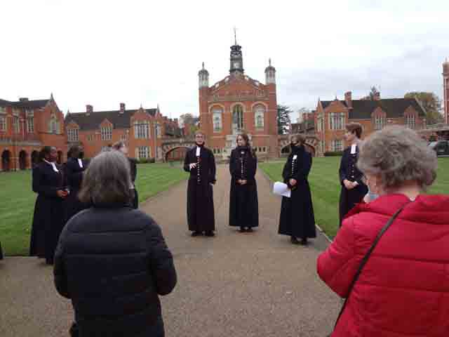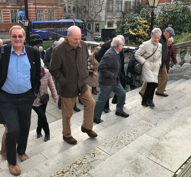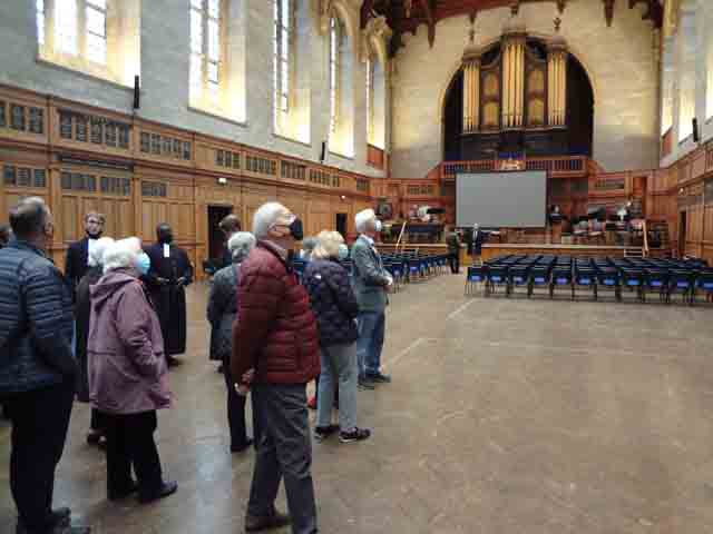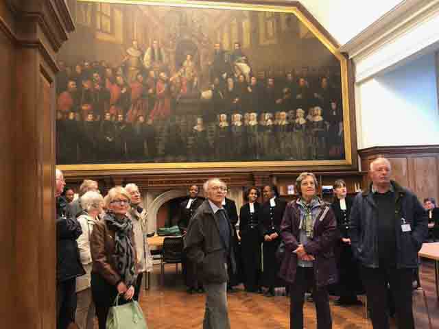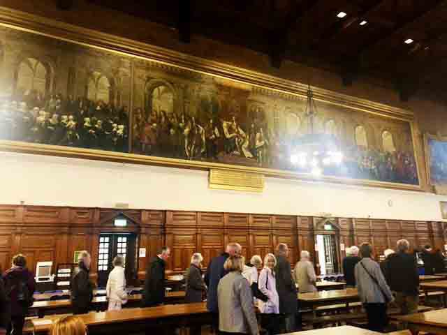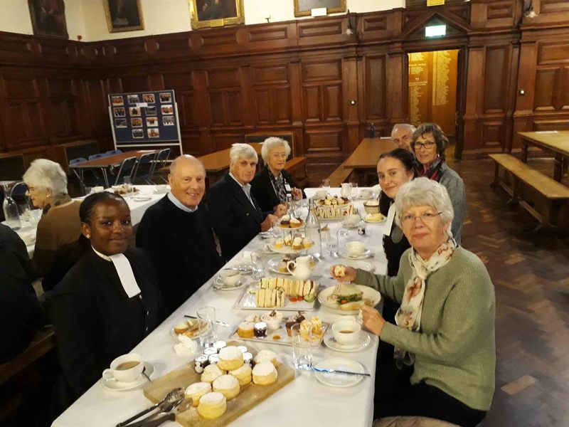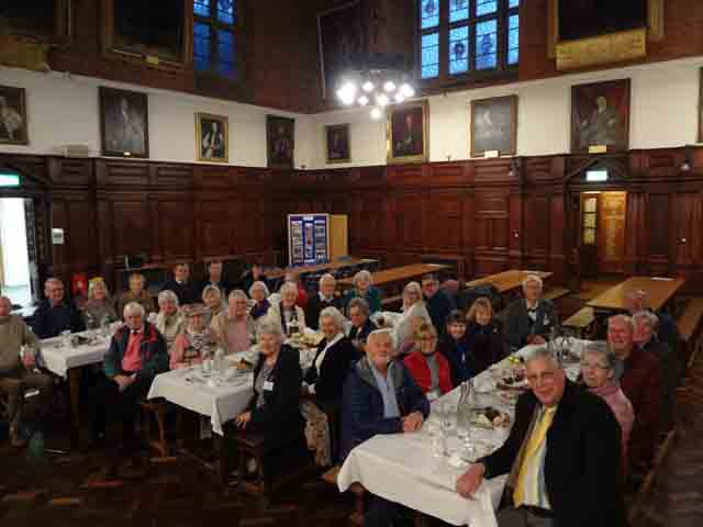 Following an over subscribed tour of Christ's Hospital last year, Ray and Valerie Gatward organised a second Christ's Hospital Verrio Tour. 23 Members, Wives and Partners attended. Christ's Hospital was founded in 1552 and the tour began with a visit to the School Museum, led by the Head Curator Laura Kidner. The museum is responsible for the many thousands of artefacts and archives relating to Christ's Hospital, many displayed around the school site, others held at the London Metropolitan Archives that reflect over 465 years of history. Following on from the museum the group was given a tour of the school grounds and buildings led by guide pupils. The senior guides gave individual talks on the history of the school, its buildings and also demonstrated the unique elements of the boys and girls school uniforms. Their enthusiasm, knowledge and ability to present to the group, whilst walking backwards, was a pleasure to behold. The tour finished in the main dining hall, the location of the enormous Antonio Verrio 1690 painting from which the tour takes its name, that depicts the commemoration of the foundation of the Royal Mathematical School in 1673. The excellent afternoon tea, with some of the guides, gave us all time to engage with them on a personal level and gain further insight into their hopes and aspirations for the future."