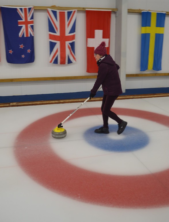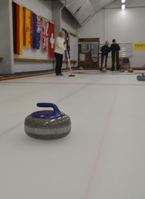 The two hours we spent on the rink flew by as we tried to master the art of pushing a 20-kilo lump of Ailsa Craig granite 150 feet down the ice to stop on a target circle 12 feet in diameter. It was more than a tad tricky but slowly we improved from hopeless to hopeful and even managed to score a hat trick - three stones in the circle. Lots of shouted advice, excitement, furious sweeping, and delight until the successful stone got knocked out by the opposing team or worse still one's own.