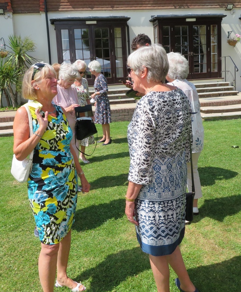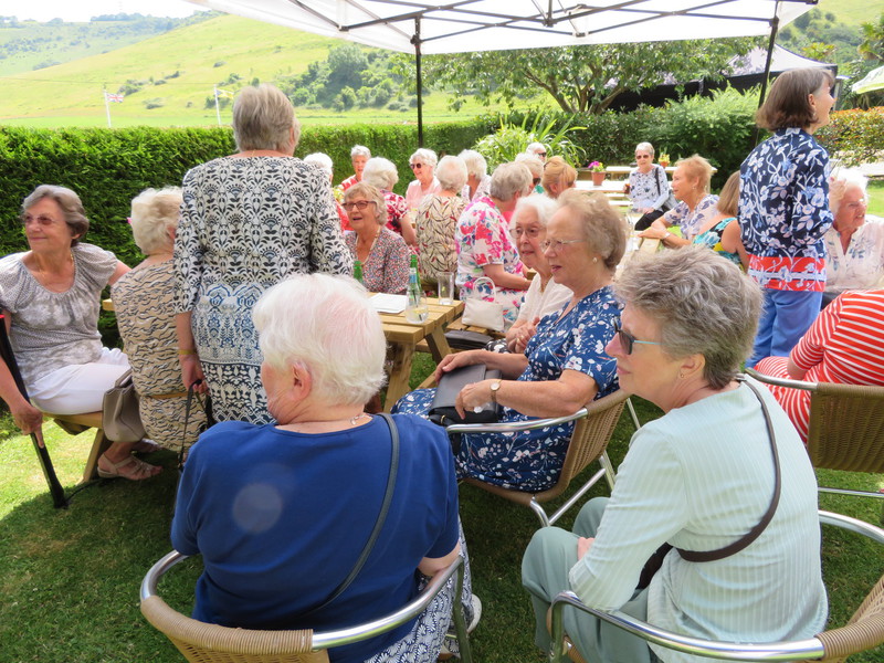 Valerie Gatward reports that 33 Ladies met up at the beautiful setting of Tottington Manor Hotel for the much-delayed Ladies Lunch. It was the first time this group were able to get together since February 2020 and all agreed that it was a very special and much anticipated occasion. The weather played its part, and the staff at Tottington Manor had very kindly set up tables, benches, chairs and even a gazebo in the garden outside of the Downs Suite where lunch would be served. Valerie hosted the gathering and was delighted to see how much it all meant for these ladies to see their friends enjoying the sunshine and the occasion. A few words should be said about the staff who were very much involved in ensuring that the event went as smoothly as was possible. Nothing was too much trouble and they themselves actually reported enjoying delivering the service to our group of ladies. Lunch was delicious and each plate of food was beautifully presented. After lunch, and during tea and coffee, we took the opportunity of thanking all the staff who had played their part in making the afternoon an enjoyable occasion.