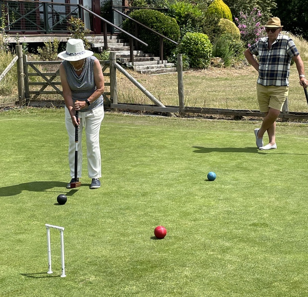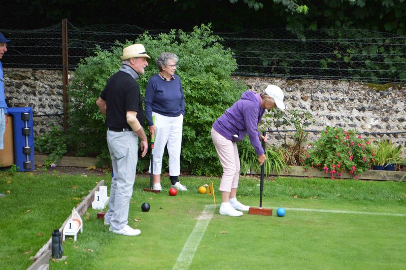 Croquet is becoming more popular having benefited from the pandemic social distancing restrictions as an outdoor sport that can observe the guidelines. Having had a practice session in June our team of 16 players and 2 supporters met at the Sussex County Croquet Club (WCCC) at Southwick for a day’s competitive play against three other Probus clubs, Storrington, South Downs and West Chiltington. A fabulous setting where international competitions take place on 11 manicured lawns. The weather was mostly good and dry which is always a plus. We enjoyed a 30-minute tuition from the Academy coaches and then were split into four groups each with 7 pairs for doubles play.