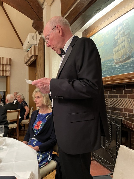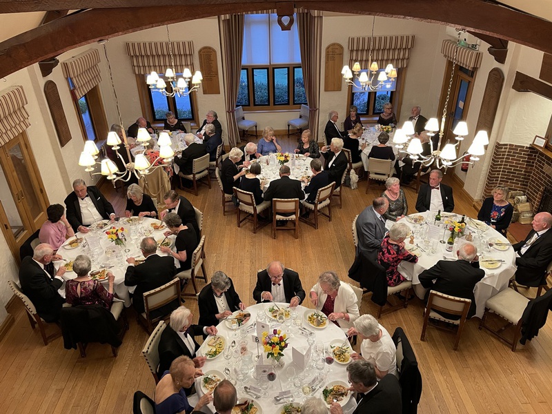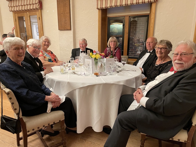 The Club’s formal Annual Dinner for 2022/23 took place on Friday 21st April at the West Sussex Golf Club with some fifty-five diners present. Probus Chairman John Maunder and his wife, Rowenna, greeted everyone on arrival and a convivial pre-dinner session followed in the bar. As always, the golf club’s restaurant was pleasantly set up for dinner with round tables to aid the flow of conversation. Dinner was served, (albeit somewhat slowly), and the evening progressed with a brief speech from the Chairman who, among other things, expressed his pleasure in seeing everyone there, especially the lady associate members. There followed the loyal toast and another brief speech, this time from the Chairman elect, John Gilbert. Flowers were presented to the Chairman’s wife and the evening ended with everyone mixing among the other tables to continue their conversations. The accompanying photographs provide a sense of this enjoyable occasion.