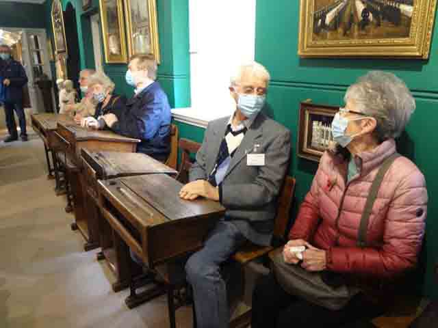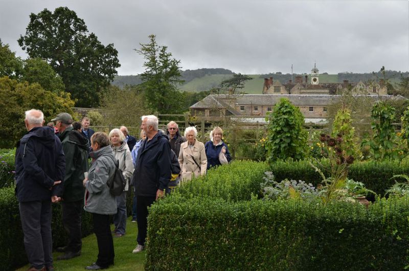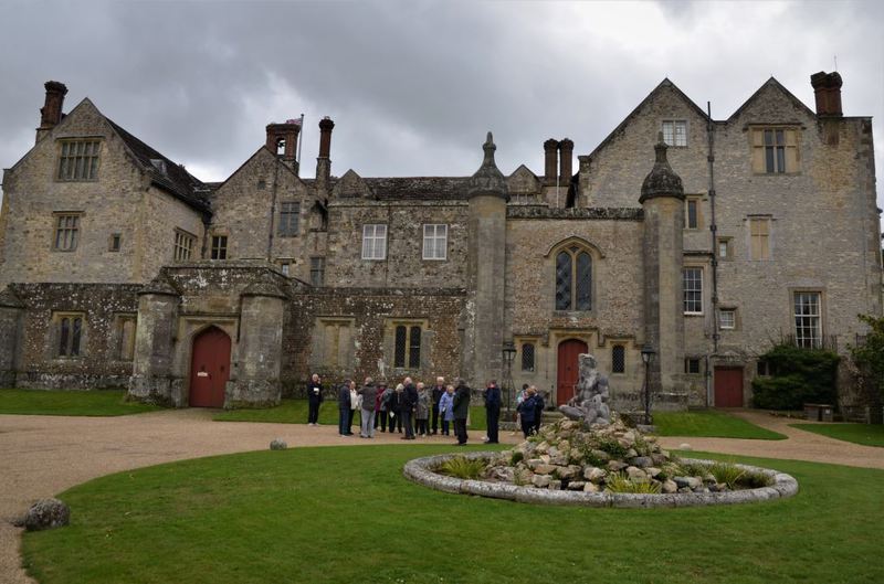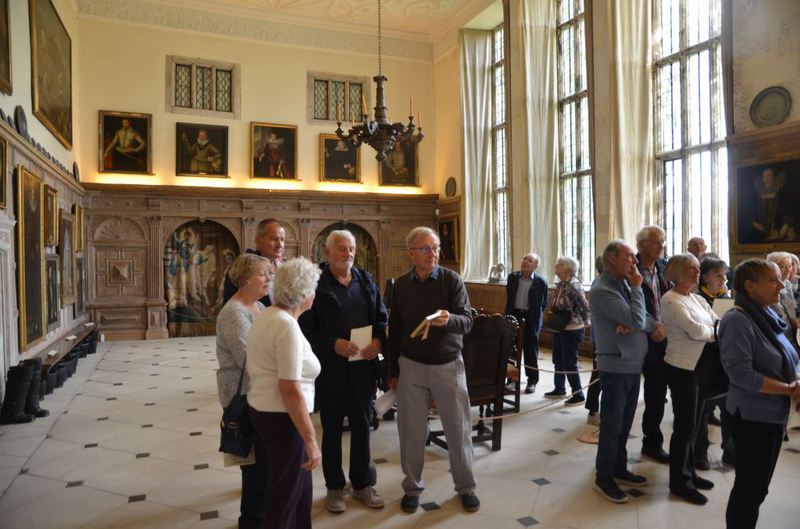 Although many of us had visited the house before, probably on more than one occasion, Carol’s encyclopaedic knowledge and obvious love of the house, its history and all the many artefacts contained in it made it come alive in a way that is not normally possible. We started our tour in the Great Hall with many paintings of the Palmer and Bishopp families who had owned the property and were intrigued by the large heavy leather water jug on display on the central table which was on casters for ease of use. The tour finished in the extraordinary long gallery, the third longest of its kind in the country, where the far sited architect had provided a panelled ceiling so that if the roof leaked and damaged the ceiling only the damaged part of it would need to be renewed.