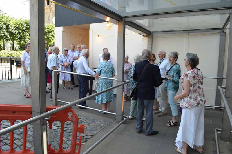 We had 31 people from the club and after separating into two groups we were each taken on a fascinating tour. We stood on the stage set for the current musical, The Famous Five. We learned how the stage was capable of being raised and lowered, secret trap doors and how it could be adapted to various productions, in particular Up River when the stage was ‘hollowed out’ to allow thousands of gallons of water to be pumped in and for a river boat to actually float on it.