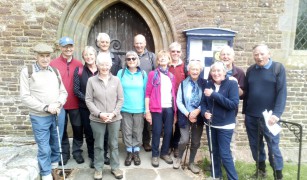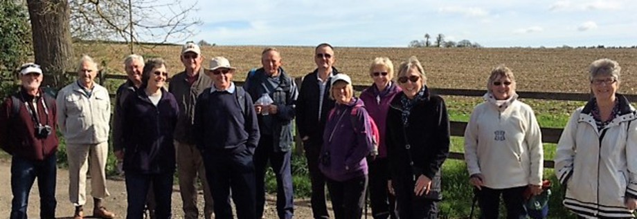 Simon Powlson led this lovely walk of just under 5 miles from the Queens Head pub in Barns Green - Through Itchingfield churchyard with its unique historic church (where this photo was taken), and along part of the West Sussex Literary Trail. 14 members took part with another 5 joining us for lunch at the pub.
