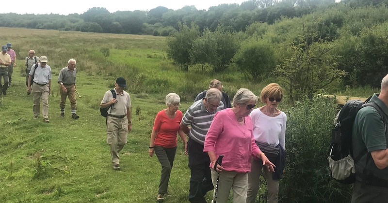 Alan Jeffs led this walk on a perfect sunny warm day from the Crown Inn at Cootham around the circumference of Parham airfield towards the start of the Point-to-Point racecourse, thence north on back roads and footpaths to the RSPB sanctuary at Pulborough Brooks. Pausing for an ice cream or coffee at the RSPB cafe with the return leg south via country lanes then across the Parham estate on the Literary Trail back to Cootham for a welcome lunch. Total distance for the 16 walkers (including one Bermudian guest) was 4.5 miles. - and very enjoyable.