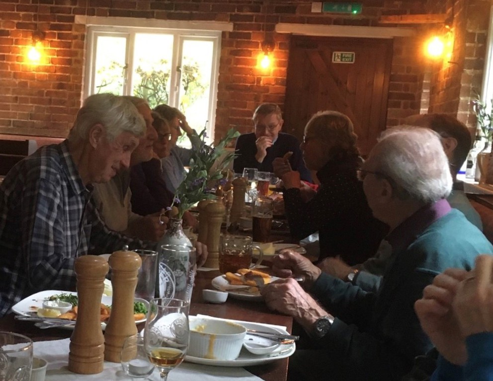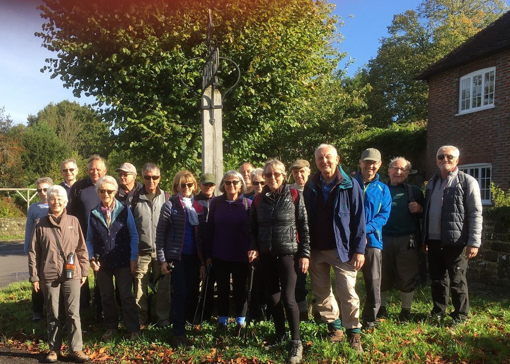 "On a sunny, crisp Autumn morning 15 of us set out from ‘The Cricketers’ pub for a leisurely walk passing Duncton Mill and the fish farm. As we then walked through open fields, we had a fine view of the Downs in the sunshine. A brief stop was made to admire the ancient church of St. Richard and the elegant listed Burton Park Mansion. We returned to the pub, along part of the West Sussex Literary Trail, where an excellent lunch was enjoyed by all."