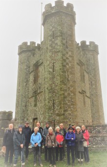It would have been a lovely circular walk, but the weather was cool and breezy! The company however was superb. From the Black Rabbit pub, we headed southwards towards for about ½ mile towards Arundel passing the Wildfowl & Wetlands Trust – Arundel Wetlands Centre. We turned into Swanbourne Lake area that is part of the Arundel Castle Park and followed the path alongside the north side of the Lake rising gently up the valley that feeds the lake above its western end. We then turned sharp left up the path that rises a couple of hundred feet to a plateau to the Hiorne Tower (where we posed for this photo) in the Duke of Norfolk’s parkland above the town. We descended some of the quaint side roads through the town then passed the Castle main entrance to return along Mill Road and finally back to the pub for an enjoyable lunch where 3 more Club friends joined us.