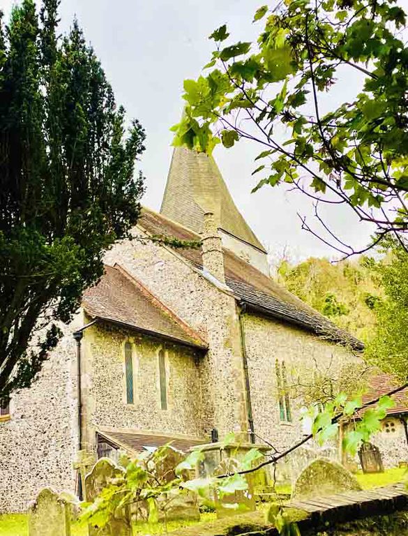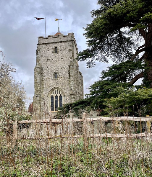 We were lucky to have a great weather window when 19 intrepid walkers met at the Badgers Pub just south of Coultershaw Bridge near Petworth. Our walk, via country lanes and footpaths, took us to a bridge spanning the tranquil River Rother and then through corn fields and a lane up to All Hallows Church at Tillington.
