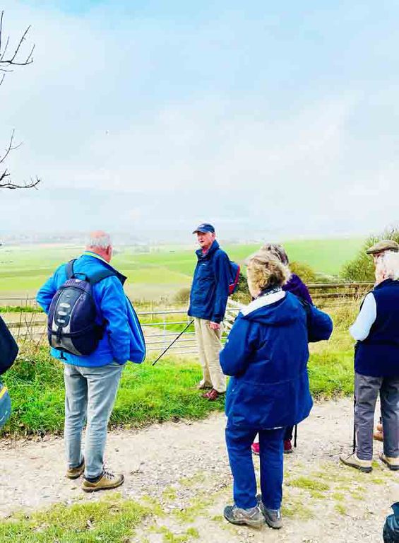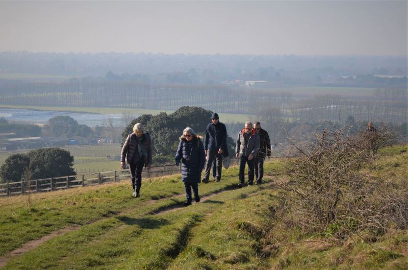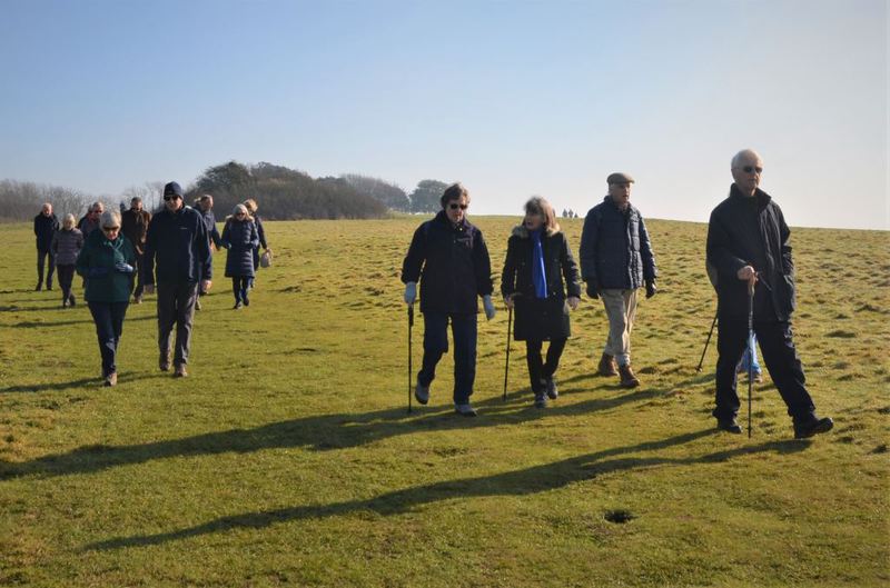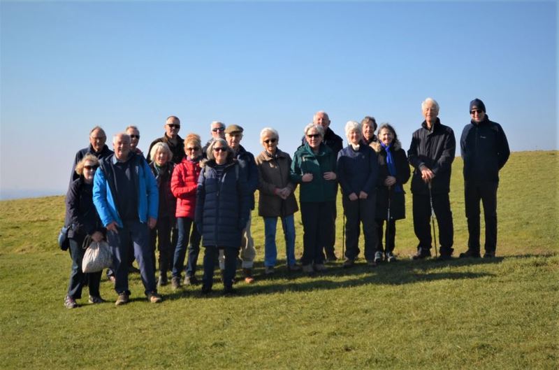 Ted Fisher led this 4½ mile walk from Ferring towards the South Downs with 14 walkers and 2 guests for lunch which all enjoyed at The Henty Arms in Ferring village. The group set off in somewhat chilly, overcast conditions, however, all enjoyed the view from atop Highdown Hill and the gentle uphill climb and easy decent appeared to suit all.