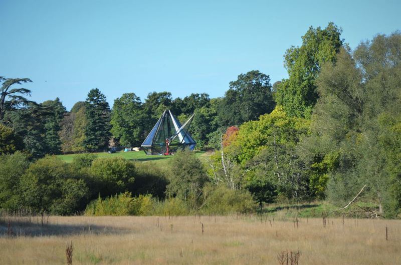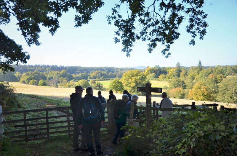 Led by Stuart Arnold, a lovely sunny day greeted the 11 walkers setting off from Midhurst car park heading north west out of the town by the river Rother on part of the relatively new Lipchis Way. Breaking off from the river the path headed towards the 1102 acre Woolbeding estate now owned since 1957 by the NT. A fine view of the house and some of the gardens was afforded from the climb up across the fields. At this point the spectacular glasshouse was visible which draws inspiration from the Victorian ornamental terrariums and features ten glass and aluminium ‘sepals’ which take four minutes to open on hydraulic rams, creating an immense 141m2 space in the shape of a crown.