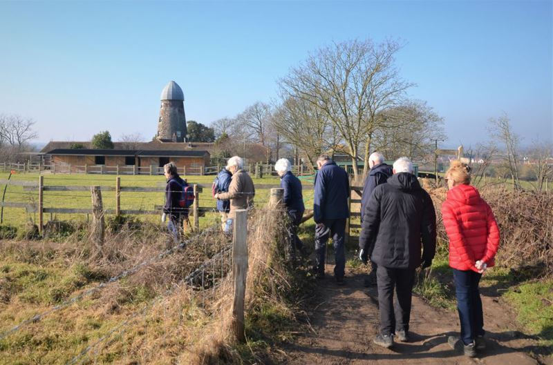 A good turnout of 18 of us did the walk, organised by Tim Healey, from the Highdown Gardens (Goring) over Highdown Hill to the old windmill near Ecclestone Manor (near Angmering). Then back to the Botanic Gardens and lunch at the Highdown Pub. We were joined by one non walker to make it 19 for lunch. Weather was wonderfully sunny and mild throughout the walk. ( we started the walk just after early morning mist cleared ). Ground conditions were relatively dry with very few patches of mud.