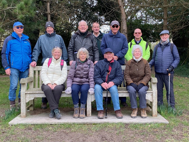 Mike Brett gathered 11 walkers on a dull un-springlike morning that started at The Woodman Arms at Hammerpot to proceed over the next 2 hours through the Estate & returned to the pub where 3 more friends joined the walkers for lunch.