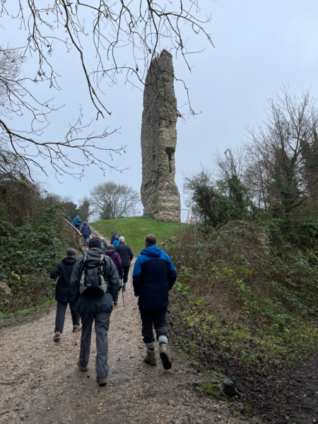 A short climb up to the site of Bramber castle followed. The castle had been built on high ground overlooking what was then the wide estuary of the River Adur at the same time as the church. Unlike the church the castle built by William de Braose, 1st Lord of Bramber, had been allowed to fall into decay by the 16th century with some of the stone and flint being used for road building. All that we had to gaze at was the remaining 30 feet high part of the keep which is such a prominent landmark in Bramber, we had to imagine what it used to be like when it was defending the Rape of Bramber.