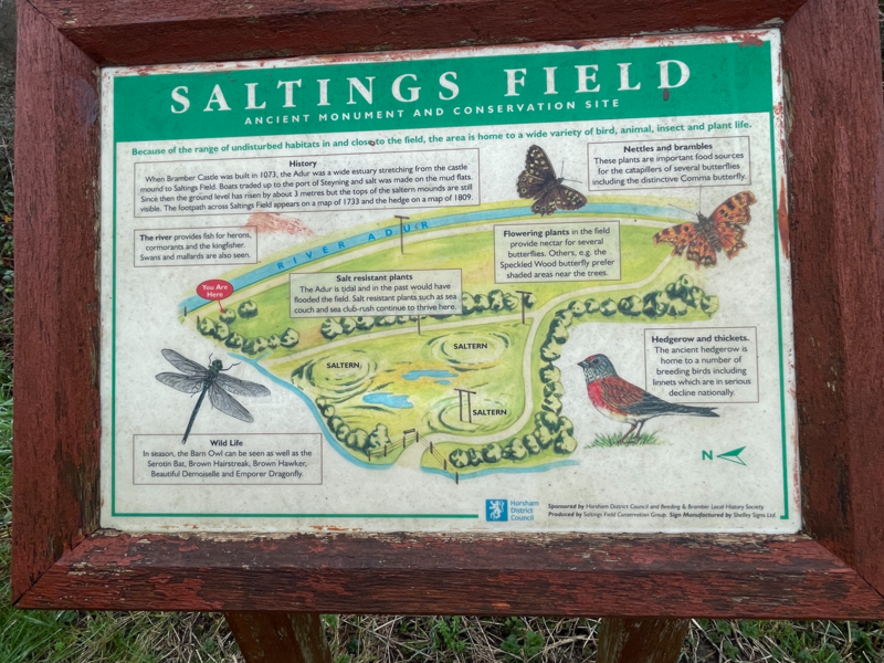 After a short walk along Castle Lane we headed off on a footpath across the valley and over the river to our second church visit. St Peters at Upper Beeding, another Norman church built in about the 12th century. After appreciating the Norman architecture we headed back down to the river and then south to Bramber bridge past the salting fields where salt was collected when the valley was a wide estuary and ships were able to sail up to Steyning port.