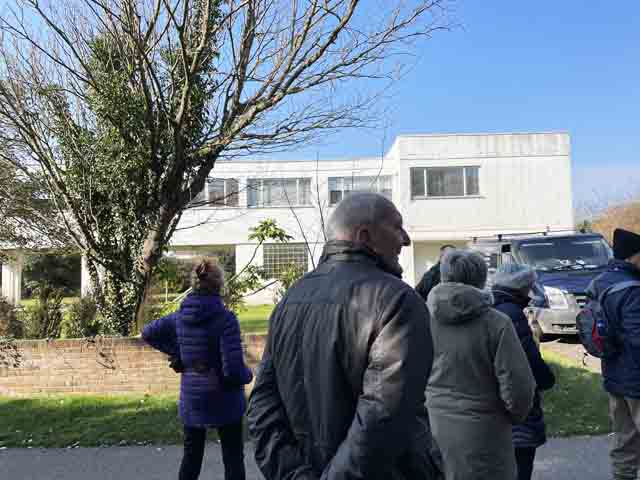 The walk continued through the village onto the Ferring Rife, over the fields and onto Angmering-on-Sea. Here we stood outside Sea Lane House, a rather boring looking 1930s house that hid some remarkable facts.