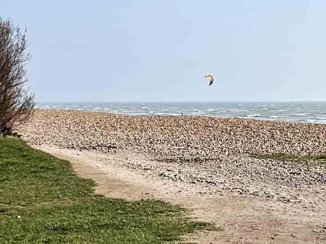 We reached the coastline at Kingston Gorse to be met by a very strong easterly wind, the direction we had to walk in towards Patterson’s Walk. This area has been the home of many celebrities over the years: Flanagan and Allen, the owners of the Dodge car manufacturer, Raymond Massey and more recently Des Lynam and Robin Cousins. The Bluebird Café built in 1920 served as a NAFFI for Canadian troops during WW2 and along the beach the pill box, one of many built along the South Coast but is now one of only two left between Selsey and Shoreham.