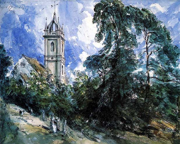 literary figure, well known in his day, who lived here in the 1700s. We then passed through undulating corn fields in bright sunshine to Nore Hill woods, an ancient woodland on the Slindon