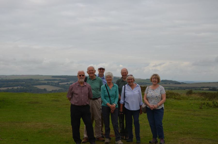 A select group of eight set off in fine walking weather to this outstanding historic site - the second largest hill fort in Britain. On reaching the first rampart we started on our tour of 2000 years into the past from Neolithic flint mines, Bronze Age barrows, Iron Age hill fort, Roman occupation, Medieval vantage point against the Vikings, Tudor beacon warning for the Armada to modern times via World War 2, with the addition of ancient folklore and myths. We were treated to stunning views, 360 degrees of coast and downland plus some interesting additions to our group - a herd of wild ponies! Lunch was at the Black Horse, Findon, where two other members joined us.