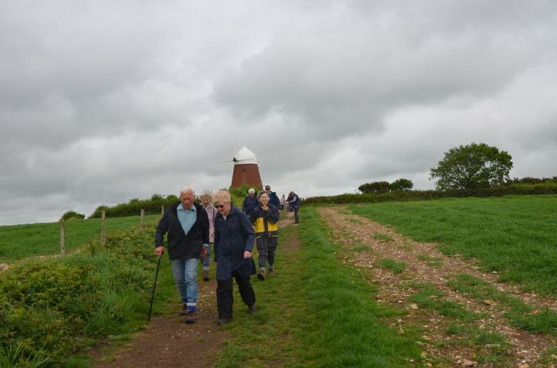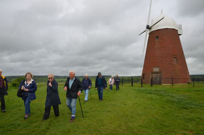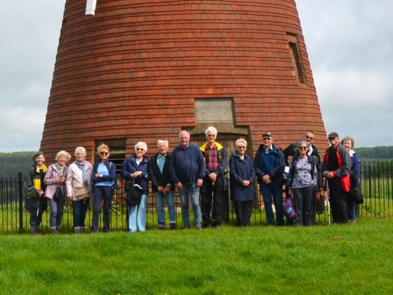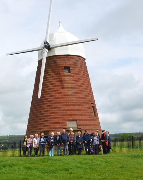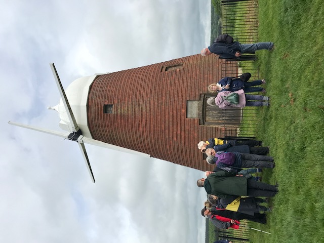 On Tuesday fourteen of us braved the climb up to Halnaker windmill. It was a steady climb in ever improving weather. By the time we breasted the ridge the cloud had largely cleared giving us panoramic views over the County and out to sea. Towering over us the windmill sparkled in the newly arrived sunshine. It was a glorious sight.