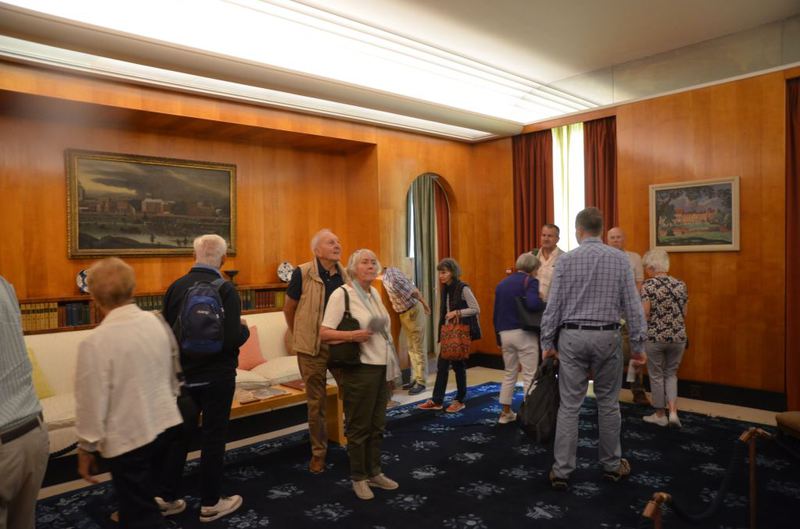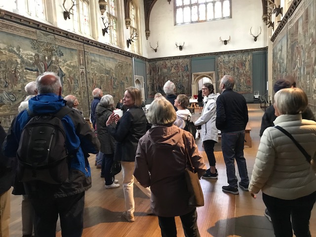 The tour started at the Hunting Lodge and its ‘Long Hal’l before returning to the main house and State Rooms. The Rooms are all individually designed and very different. The photo below shows the group in the Egyptian Dining Room.