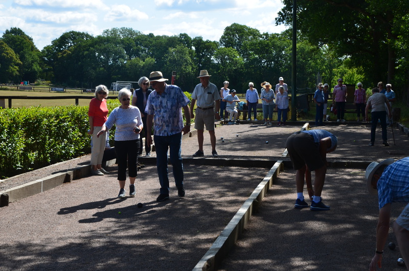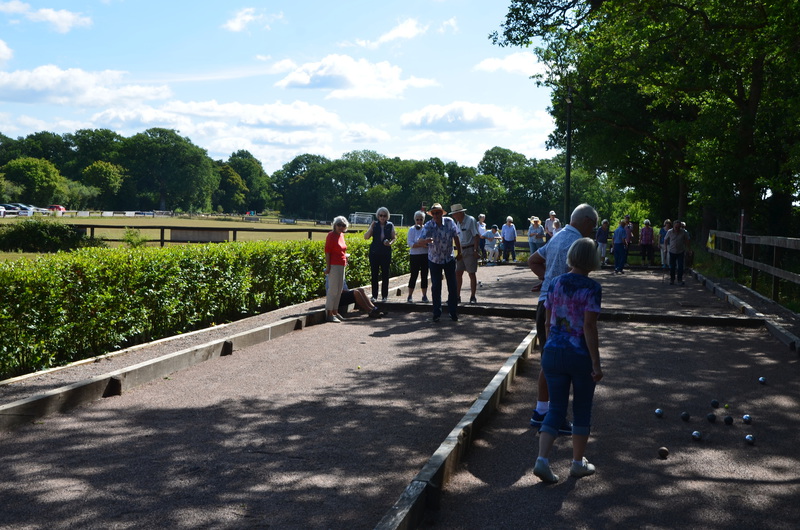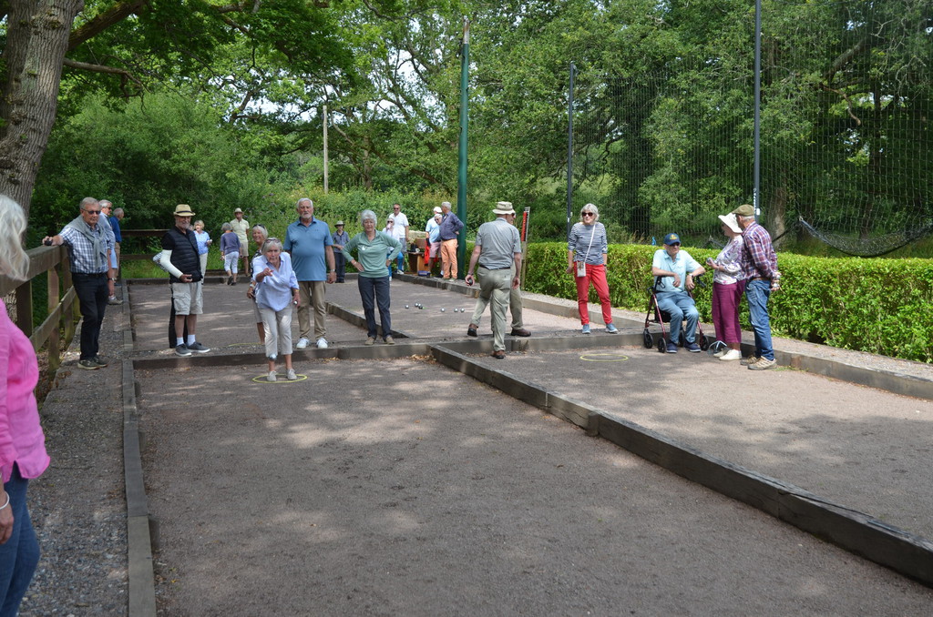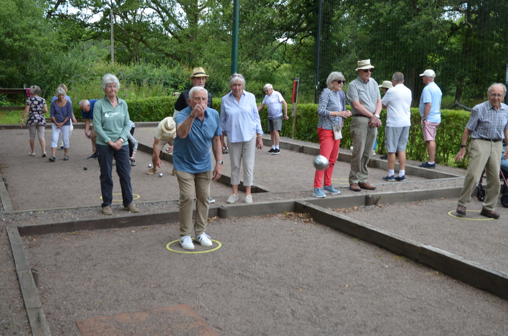 On Wednesday 16th July some 22 Chanctonbury Probus folk met at the Horsham & Shipley Community Project (HSCP) site to play Petanque. This has become a favourite annual event and our host met us for a briefing whilst we enjoyed a cuppa and cake. There are 4 pistes each one allowing two 3 person teams to compete against each other. The teams were selected randomly as individuals and not as couples! The hosts provided 4 volunteers to fill in and help with scoring and advice. We played for a couple of hours and I think everyone was a winner in the end, even though I could hear a few moans as to how lucky the other team was with the bounce of the boules! A friendly competition I think makes participating a bit more fun. We ended our visit with a huge thanks to our host Russell and his helpers Ken, Maureen and Pam. We plan to return in 2026 unless people would like a second visit later this year?