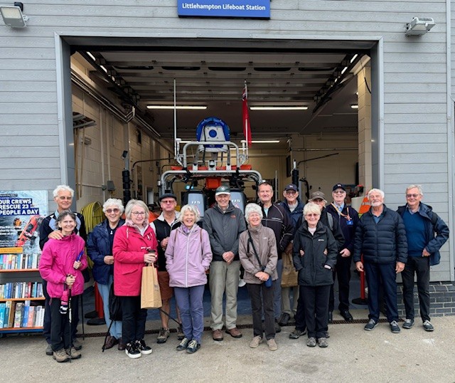 Photographs of happy walkers who having left their cars at the Arun View walked to the Littlehampton Life Boat Station for a tour, then walked over the retractable foot bridge to the Littlehampton Fort at the mouth of the Arun, returning for lunch at the Arun View.