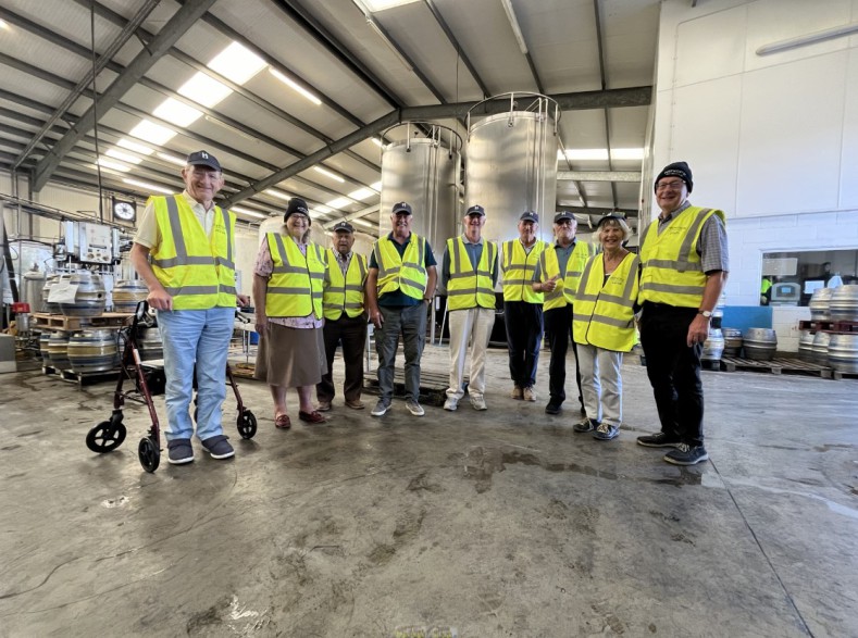 Nine of us took cars and buses to Hepworth’s on the Pulborough – Adversane road for a tour led by Martin. We gathered in the tasting room, where we could relax, chat and have a cup of coffee before donning our high vis jackets and hats and walking through into the first of the four breweries. At the moment only three are in use, Hepworth’s, Goodwood and the Ridgeway Breweries, all of the product being made by the 28 staff at Hepworth’s but made for customers as diverse as M&S, The Ivy, and the Coniston Brewery as well as being exported to China, Finland and the US.