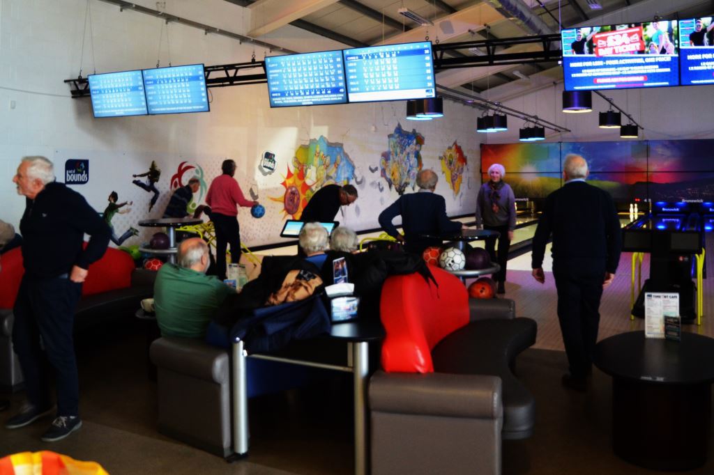Four lanes were taken over with a mixture of six Chanctonbury and Storrington players in each lane. The screens above the lanes showed how each team and individual was performing so that there was no hiding place. Everyone had respectable scores, some with the aid of the sides.