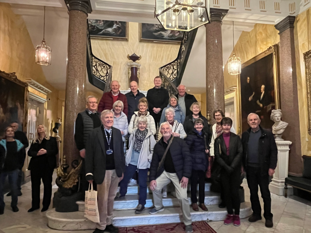 Twenty-seven members and associates visited Goodwood house, met at the splendid entrance by ‘The Butler’, for a private tour to learn more about the history and to see the magnificent State Rooms. Our guide started with a brief overview of the previous occupants of the house, some of whom had indulged in their particular interests that resulted in the various events held at Goodwood (for instance Goodwood [horse] Races, Festival of Speed and Goodwood Revival) that all help to defray the enormous costs of maintaining the Goodwood Estate comprised of the house, other properties and over eleven thousand acres of beautiful downland countryside.
