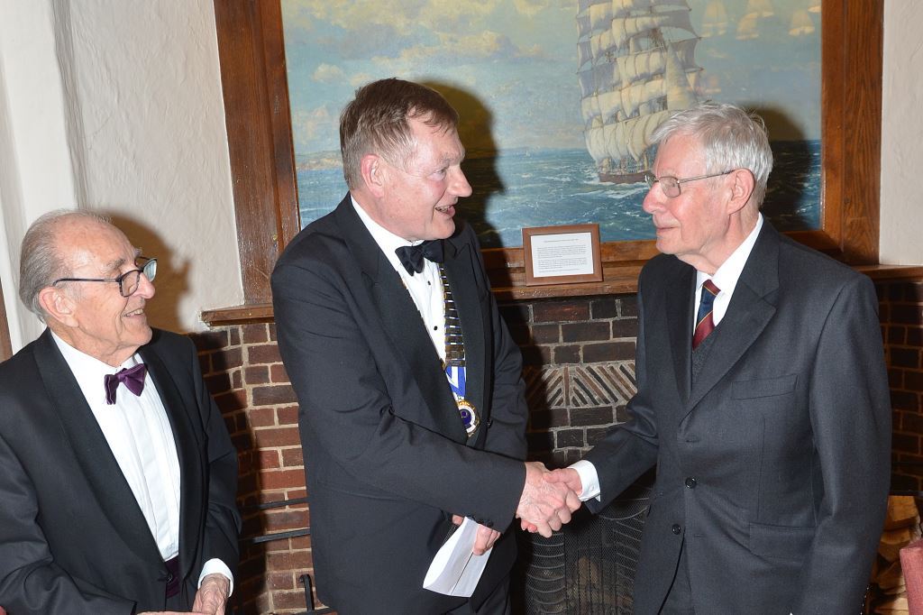 Presentation of Founder Member badges to Jim Heath and Peter Welch by Club Chairman Peter Bowen-Davies.